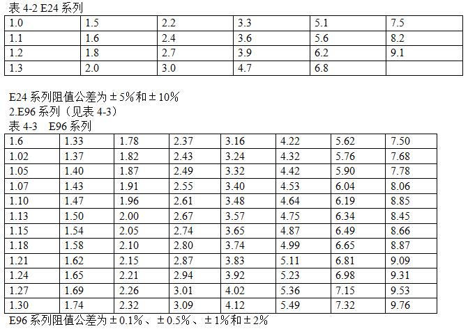 五.表面組裝電阻、電容的額定阻值、額定容值的規(guī)定(電子部標(biāo)準(zhǔn))額定阻值、額定容值分為E24系列和E96系列,其表示方法是采用各系列。